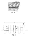 FIG. 10 is a broken view, partly in section, depicting a representative application of the stimulating electrodes for the stimulator in which the stimulating electrodes are applied to the spine for spinal cord stimulation.