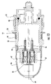The fiber optic receptacle 20 of this exemplary embodiment also includes bias members disposed within the receptacle housing 38. The bias members operably engage the receptacle ferrules 46 and the ferrule retainer 56 to urge the receptacle ferrules 46 toward the first end 42 of the receptacle housing 38. As shown herein, the bias members consist of one or more linear coil springs 62. Thus, the receptacle ferrules 46 are spring-loaded and thereby allowed to float axially within the interior cavity 40, thus absorbing compressive forces between the receptacle ferrules 46 and the opposing plug ferrules 70. It should be understood, however, that the fiber optic receptacle 20 can include other types of bias members, in addition to or instead of one or more springs 62. The ferrule holder 56 may also include one or more posts (not shown) extending in a lengthwise direction such that a spring can be mounted upon each respective post. In such case, each spring 62 would be longer than its respective post, even in the compressed state. As such, the posts serve to position the springs 62 that, in turn, contact the receptacle ferrules 46. FIG. 13 is a cross-section of the assembled plug 22 of FIG. 12 taken along line 13-13 with like parts indicated by like reference numbers. An elastomeric O-ring seal 66 may be disposed between the dust cap 34 and the receptacle housing 38. The fiber optic receptacle 20 is adapted to receive a corresponding fiber optic plug 22 such that plug ferrules 70 of the fiber optic plug 22 are aligned with and inserted into the first end 42 of the receptacle housing 38.