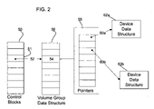 For instance, if there are 64K, where K=1024, logical volumes 14 a, 14 b . . . 14 n and each device data structure is 512 bytes and can provide information on 4K devices, then a maximum of 16 pages could need to be allocated for each possible host port connection. However, if an assumption is made that on average a given host port—control unit port connection will not access more than 8K devices, then far fewer pages will need to be allocated for the device data structure than would be needed if host and port connections would likely access all possible logical volume 14 a, 14 b . . . 14 n. Equivalently, number of device data structures can be arbitrarily limited to M×N such that, for M supported volume groups, the average number pages available per volume group is N<16.