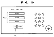 - the core unit 106 Upon detection of depression of an OK button 301 on the lower left portion of the window, the core unit 106 generates setting information used to manage ON/OFF of log recording for respective operation modes, stores it in the memory unit 111 , and returns to the previous window in FIG. 2 .