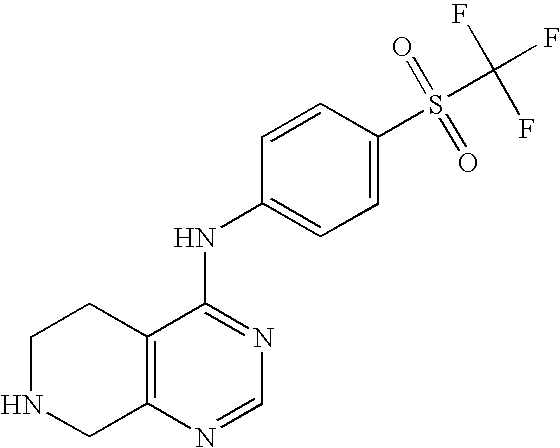 - YWKYXJNUGCEZFT-UHFFFAOYSA-N 7-(3-methylsulfonylpyridin-2-yl)-n-[4-(trifluoromethylsulfonyl)phenyl]-6,8-dihydro-5h-pyrido[3,4-d]pyrimidin-4-amine Chemical compound CS(=O)(=O)C1=CC=CN=C1N1CC(N=CN=C2NC=3C=CC(=CC=3)S(=O)(=O)C(F)(F)F)=C2CC1 YWKYXJNUGCEZFT-UHFFFAOYSA-N 0.000 claims description 6