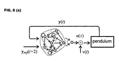 - FIG. 6 illustrates the fifth example, by providing a schematic setup of a network applied to learning a state feedback tracking controller for a pendulum, and various data sets obtained in this example.
