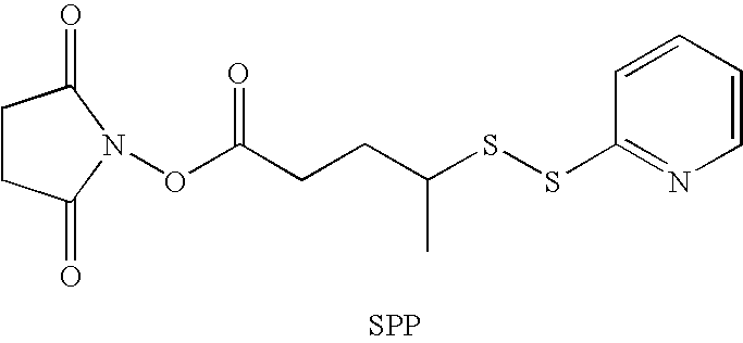 The antibody modifying agent was N-succinimidyl 4-(2-pyridyldithio)pentanoate (SPP):