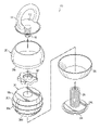 - a circular base 24 receives an annular, curved, lower enclosure portion 26 that has two circular, open ends, the lower one of which is supported by the base.