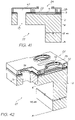 Finally, and referring to FIGS. 41 and 42, the wafer is thinned 135 microns by backside etching. FIG. 43 shows three adjacent rows of nozzles in a cutaway perspective view of a completed printhead integrated circuit. Each row of nozzles has a respective ink supply channel 27 extending along its length and supplying ink to a plurality of ink inlets 15 in each row. The ink inlets, in turn, supply ink to the ink conduit 23 for each row, with each nozzle chamber receiving ink from a common ink conduit for that row.
