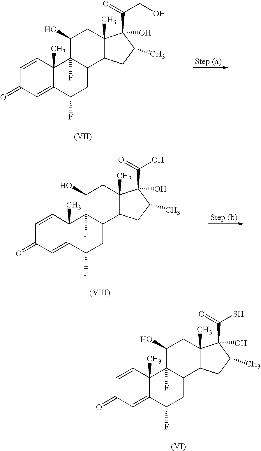 Preferred compounds of formula (I) include: 6α, 9α-difluoro-17α-[(2-furanylcarbonyl)oxy]-11β-hydroxy-16α-methyl-3-oxo-androsta-1,4-diene-17β-carbothioic acid S-(2-oxo-tetrahydro-furan-3-yl)ester or a solvate thereof, particularly 6α,9α-difluoro-17α-[(2-furanylcarbonyl)oxy]-11β-hydroxy-16α-methyl-3-oxo-androsta-1,4-diene-17β-carbothioic acid S-(2-oxo-tetrahydro-furan-3S-yl)ester or a solvate thereof.