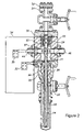 At the electrical connection end 102 of the horizontal conduit 86, the rod 84 is held within a bushing 124, formed for example from Teflon®, which in turn is held within a packing gland retainer 126 (similar to 118) which is threaded at its inner end into the horizontal conduit 86. The packing gland retainer 126 retains the packing and electrical isolation items 106, 108, 110, 112, 114 and 124. The outside diameter of the packing gland ring 126 is threaded to mount to a lock nut 120 (as above) with a wiper ring 122 (as above) to hold the packing gland ring 126 within the horizontal conduit 86. At the outer end of the packing gland retainer 126, a nut 128 is used to attach to the electrical box 34. Rubber washers 130 and flat washer 132 seal between the nut 128 and the packing gland retainer 126.