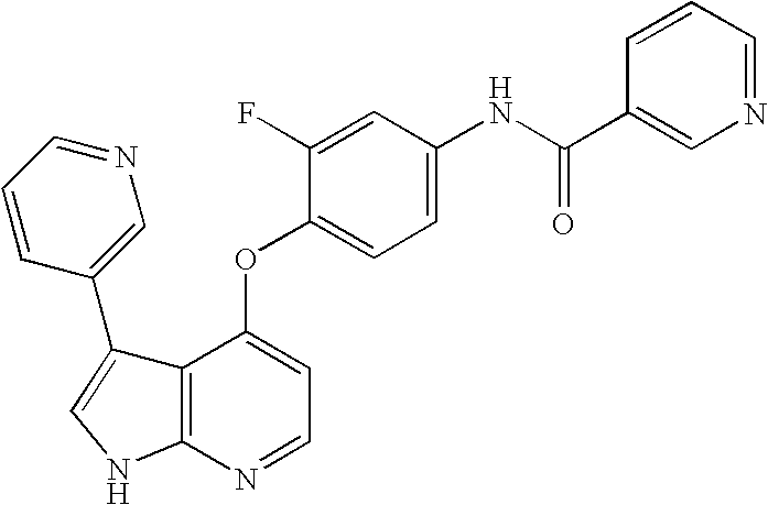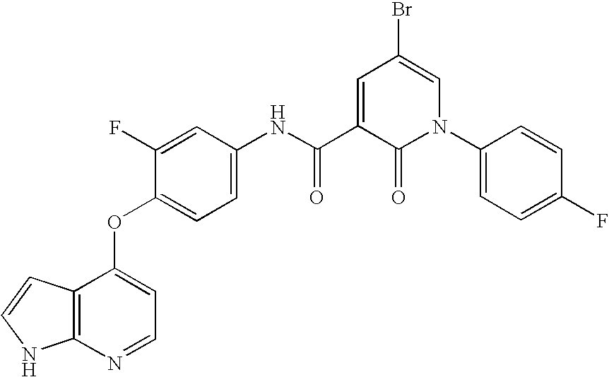 - DIDIVIXODOFLFJ-UHFFFAOYSA-N O=C(NC1=CC=C(OC2=CC=NC3=C2C=CN3)C(F)=C1)C1=CC=CN(CC2=CC=C(F)C=C2)C1=O Chemical compound O=C(NC1=CC=C(OC2=CC=NC3=C2C=CN3)C(F)=C1)C1=CC=CN(CC2=CC=C(F)C=C2)C1=O DIDIVIXODOFLFJ-UHFFFAOYSA-N 0.000 description 2