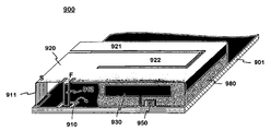 - Curve 21 shows alteration of the reflection coefficient as a function of frequency, when the parasitic conductive strip is not connected to the ground