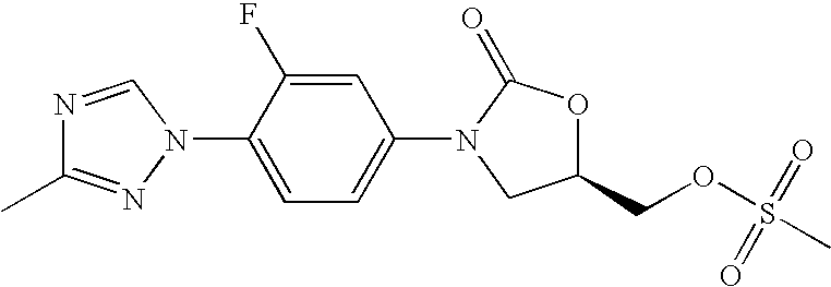 - VZYOXPNUBLGYCO-CILPPPSOSA-N (5r)-3-[3,5-difluoro-4-(1-oxothian-4-yl)phenyl]-5-[(4-methyltriazol-1-yl)methyl]-1,3-oxazolidin-2-one Chemical compound N1=NC(C)=CN1C[C@@H]1OC(=O)N(C=2C=C(F)C(C3CCS(=O)CC3)=C(F)C=2)C1 VZYOXPNUBLGYCO-CILPPPSOSA-N 0.000 claims description 6