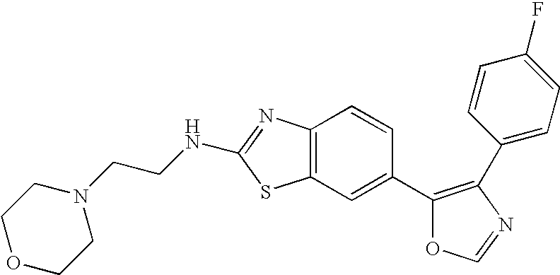 Compounds that reportedly inhibit p38 kinase and cytokines, such as IL-1 and TNF-α for use in treating inflammatory diseases, are disclosed in U.S. Pat. Nos. 6,277,989 and 6,130,235 to Scios, Inc; U.S. Pat. Nos. 6,147,080 and 5,945,418 to Vertex Pharmaceuticals Inc; U.S. Pat. Nos. 6,251,914, 5,977,103 and 5,658,903 to Smith-Kline Beecham Corp.; U.S. Pat. Nos. 5,932,576 and 6,087,496 to G.D. Searle & Co.; WO 00/56738 and WO 01/27089 to Astra Zeneca; WO 01/34605 to Johnson & Johnson; WO 00/12497 (quinazoline derivatives as p38 kinase inhibitors); WO 00/56738 (pyridine and pyrimidine derivatives for the same purpose); WO 00/12497 (discusses the relationship between p38 kinase inhibitors); and WO 00/12074 (piperazine and piperidine compounds useful as p38 inhibitors).