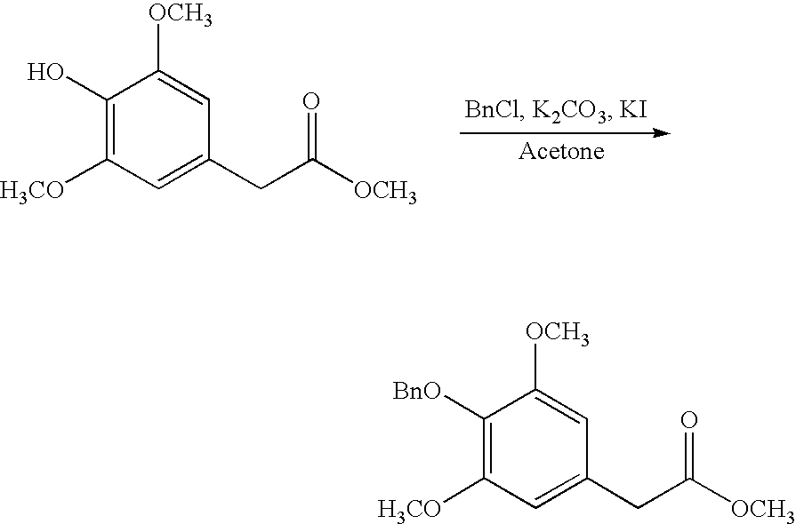 - DBQSASQCANMGHZ-UHFFFAOYSA-N CCOC(=O)C(Cl)C1=CC(OC)=C(OC)C(OC)=C1.CCOC(=O)CC1=CC(OC)=C(OC)C(OC)=C1 Chemical compound CCOC(=O)C(Cl)C1=CC(OC)=C(OC)C(OC)=C1.CCOC(=O)CC1=CC(OC)=C(OC)C(OC)=C1 DBQSASQCANMGHZ-UHFFFAOYSA-N 0.000 description 1