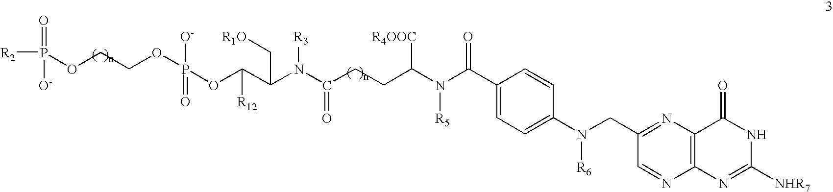 The delivery of compounds to specific cell types, for example, cancer cells or cells specific to particular tissues and organs, can be accomplished by utilizing receptors associated with specific cell types. Particular receptors are overexpressed in certain cancerous cells, including the high affinity folic acid receptor. For example, the high affinity folate receptor is a tumor marker that is overexpressed in a variety of neoplastic tissues, including breast, ovarian, cervical, colorectal, renal, and nasoparyngeal tumors, but is expressed to a very limited extent in normal tissues. The use of folic acid based conjugates to transport exogenous compounds across cell membranes can provide a targeted delivery approach to the treatment and diagnosis of disease and can provide a reduction in the required dose of therapeutic compounds. Furthermore, therapeutic bioavialability, pharmacodynamics, and pharmacokinetic parameters can be modulated through the use of bioconjugates, including folate bioconjugates. Godwin et al., 1972, J Biol. Chem., 247, 2266-2271, report the synthesis of biologically active pteroyloligo-L-glutamates. Habus et al., 1998, Bioconjugate Chem., 9, 283-291, describe a method for the solid phase synthesis of certain oligonucleotide-folate conjugates. Cook, U.S. Pat. No. 6,721,208, describes certain oligonucleotides modified with specific conjugate groups. The use of biotin and folate conjugates to enhance transmembrane transport of exogenous molecules, including specific oligonucleotides has been reported by Low et al., U.S. Pat. Nos. 5,416,016, 5,108,921, and International PCT publication No. WO 90/12096. Manoharan et al., International PCT publication No. WO 99/66063 describe certain folate conjugates, including specific nucleic acid folate conjugates with a phosphoramidite moiety attached to the nucleic acid component of the conjugate, and methods for the synthesis of these folate conjugates. Nomura et al., 2000, J. Org. Chem., 65, 5016-5021, describe the synthesis of an intermediate, alpha-[2-(trimethylsilyl)ethoxycarbonl]folic acid, useful in the synthesis of ceratin types of folate-nucleoside conjugates. Guzaev et al., U.S. Pat. No. 6,335,434, describes the synthesis of certain folate oligonucleotide conjugates.