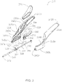 - Within the implanter handle 220 are portions of a flexible actuator channel 248 a , (and 248 b in handle 220 b not shown in FIG. 3 ), which, when assembled, form a flexible actuator channel 248 for guiding the tab 268 of the flexible actuator within the assembled implanter handle 220 .