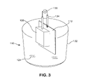 Another embodiment of the wet electrolytic capacitor of the present invention is shown in FIGS. 2 and 3. Similar to FIG. 1, a capacitor 100 is shown that includes an electrolyte 124 disposed between an anode 120 and a cathode 113. In this embodiment, however, the cathode 113 includes a cathode substrate (not shown) in the form of a rectangular-shaped metal foil or coupon. The cathode coating (not shown) extends over the sides of the rectangular-shaped metal coupon or foil. Further, the anode 120 and the cathode 113 are both attached to a voltage supply 130 and are suspended in a glass beaker 132 so that they do not touch one another. Although not shown, a separator (e.g., paper) may also be positioned between the cathode and anode as is well known in the art. Typically, the anode and cathode are separated by a distance of from about 10 micrometers to about 1000 micrometers. The cathode is attached to a metal wire 134 (e.g., tantalum wire) via spot welding for providing electrical continuity up to the voltage supply 30.