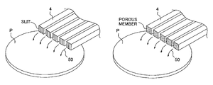 In order that the liquid 50 flows while forming the laminar flow in the space 56, for example, slits may be provided at openings of the supply nozzles 4 connected to the liquid supply unit 1 as shown in FIG. 8A, or porous members are provided at openings of the supply nozzles 4 as shown in FIG. 8B. Accordingly, the liquid 50 can be rectified to flow in the laminar flow state.