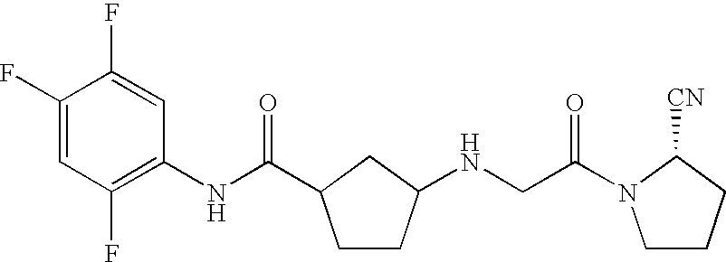 - JSYGLDMGERSRPC-FQUUOJAGSA-N N#C[C@@H]1C[C@H](F)CN1C(=O)CN[C@@H]1CC[C@H](CN2C=NC=N2)C1 Chemical compound N#C[C@@H]1C[C@H](F)CN1C(=O)CN[C@@H]1CC[C@H](CN2C=NC=N2)C1 JSYGLDMGERSRPC-FQUUOJAGSA-N 0.000 description 3