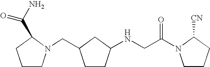 - POMXIOQJFJXDDE-WMQCIHAUSA-N N#C[C@@H]1CCCN1C(=O)CN[C@@H]1CC[C@H](CN2CCC3=CC=CC=C3C2)C1 Chemical compound N#C[C@@H]1CCCN1C(=O)CN[C@@H]1CC[C@H](CN2CCC3=CC=CC=C3C2)C1 POMXIOQJFJXDDE-WMQCIHAUSA-N 0.000 description 2