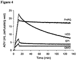 FIG. 4 shows a comparison of the neuronal uptake and retention of the [11C]phenethylguanidines PHPG and GMO with those of HED and EPI, in the isolated rat heart. ADV: “apparent distribution volume”.