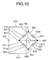 - FIG. 9 is a diagram denoting a three-dimensional structure of a circuit of the optical deflector of the fourth embodiment.