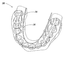 As used herein, certain terms or expressions should be understood to have the following meanings unless contextual usage clearly indicates otherwise: “Adjacent” the surface of an arch includes placement directly on the arch or spaced slightly therefrom. “Interiorly” and “exteriorly” relate to features toward the interior or exterior, respectively, of a mouth; interiorly or exteriorly with respect to an arch relates to the region within the U-shape of an arch or along the outside of a U-shaped arch, respectively. An edentulous arch is one having no teeth. An arch having an edentulous region has one or more teeth and a portion missing one or more teeth.