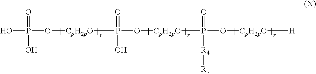 - (c)(I)(3) condensation reaction products of two or more molecules of one or more organophosphorus compounds according to structure (I), and
