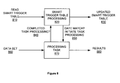 FIG. 8 is a block diagram illustrating a scheduled task processing entries in a Smart Trigger table, according to one embodiment.
