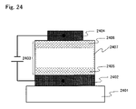 Further, with the element shown in FIG. 24, the functional realization is possible but there is present no organic interface in a conventional laminated structure. Also, quenching can be prevented by separating the luminescent region from the both electrodes as far as possible. Accordingly, it is possible to solve the problems (worsening of morphology of organic interfaces and formation of impurity layers) caused at the above-mentioned organic interfaces.
