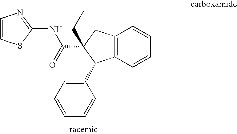 N-(4-((4-(4-pyridinyl)phenyl)methyl)-1,3-thiazol-2-yl)-2′,3′-dihydrospiro[cyclohex-2-ene-1,1′-indene]-2′-carboxamide, and N-(4-((4-(4-pyridinyl)phenyl)methyl)-1,3-thiazol-2-yl)-2′,3′-dihydrospiro[cyclohex-3-ene-1,1′-indene]-2′-carboxamide, respectively