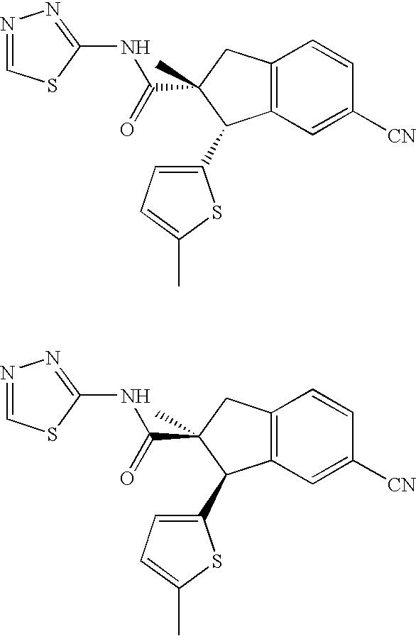 (1S,2R)-6-cyano-2-methyl-1-(5-methyl-2-thienyl)-N-1,3,4-thiadiazol-2-yl-2,3-dihydro-1H-indene-2-carboxamide and (1R,2S)-6-cyano-2-methyl-1-(5-methyl-2-thienyl)-N-1,3,4-thiadiazol-2-yl-2,3-dihydro-1H-indene-2-carboxamide