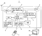 Under the control of the system control unit 11, the video and audio signal demodulator unit 3 demodulates the television broadcast signals received by the tuner 2, and generates video and audio signals. The video and audio signals generated by the video and audio signal demodulator unit 3 are output to the display 30 and the loudspeaker 30 a through the OSD processing unit 6. Thus, the video images and audio sounds of the television broadcast are reproduced by the display 30 and the loudspeaker 30 a. In addition, the video and audio signals generated by the video and audio signal demodulator unit 3 are output to the video and audio signal processing unit 4.