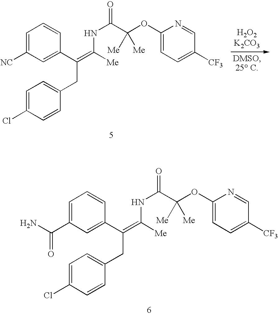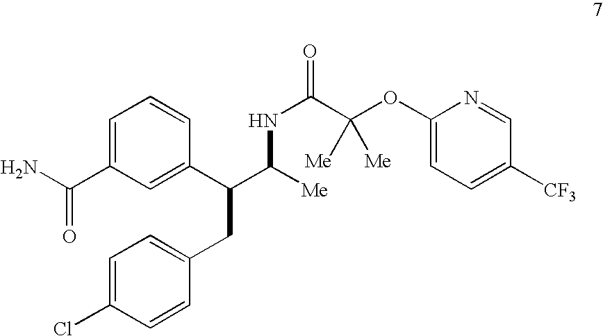 - FXWCNXJNMIITKT-VXNWTZIESA-N C/C(NC(=O)C(C)(C)OC1=CC=C(C(F)(F)F)C=N1)=C(\CC1=CC=C(Cl)C=C1)C1=CC(C(N)=O)=CC=C1.CC.C[C@H](NC(=O)C(C)(C)OC1=CC=C(C(F)(F)F)C=N1)[C@@H](CC1=CC=C(Cl)C=C1)C1=CC(C(N)=O)=CC=C1 Chemical compound C/C(NC(=O)C(C)(C)OC1=CC=C(C(F)(F)F)C=N1)=C(\CC1=CC=C(Cl)C=C1)C1=CC(C(N)=O)=CC=C1.CC.C[C@H](NC(=O)C(C)(C)OC1=CC=C(C(F)(F)F)C=N1)[C@@H](CC1=CC=C(Cl)C=C1)C1=CC(C(N)=O)=CC=C1 FXWCNXJNMIITKT-VXNWTZIESA-N 0.000 description 1