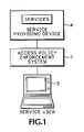 FIGS. 8-10 illustrate that components of the access policy enforcement system 7 need not be physically or logically located on the same physical device as the service-providing device 10. For instance, as illustrated in FIG. 8, a proxy service provider 80 can be a standalone hardware device or a software process running on the service-providing device 10, for example. A service user 5 couples to the proxy service provider 80 to use services. The proxy service provider 80 doesn't actually provide the desired services, instead the services are delivered by the service-providing device 10. The origin of the services, however, is transparent to the service user 5, and the actual user of the services is transparent to the service-providing device 10. Only the proxy service provider 80 knows the identity of the parties. The use of proxies is well known in the art and implementing components of the access policy enforcement system 7 using a proxy can be understood by those skilled in the art after understanding the teachings of this disclosure.