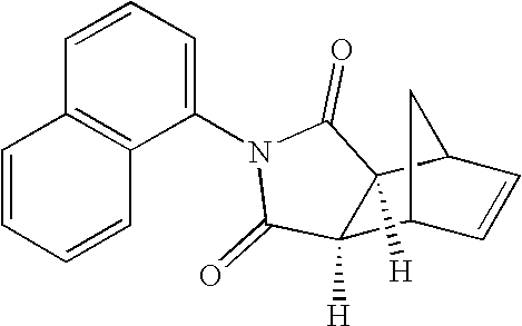 - CNAPOBFWRAKCGM-UHFFFAOYSA-N CC(=O)OC1CC2CC1C(C1=O)C2C(=O)N1C1=CC=C(Cl)C=C1 Chemical compound CC(=O)OC1CC2CC1C(C1=O)C2C(=O)N1C1=CC=C(Cl)C=C1 CNAPOBFWRAKCGM-UHFFFAOYSA-N 0.000 claims description 2