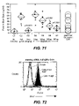 FIG. 68 shows representative fluorescent antibody staining of mouse basophils from BAC transgenic founder lines 72-1-4 and 304-P-16 (as indicated) with positive surface expression of human FcεR1α protein.