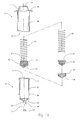 FIG. 18 shows an exploded cross-sectioned elevation view of the elements of the syringe cartridge of FIG. 10.