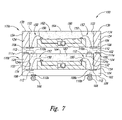 - the first device can further include a plurality of first through-casing interconnects at least partially encapsulated in the first casing and in contact with corresponding first interposer contacts. The first interconnects extend from the first face to the second face
