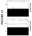 FIG. 13 a is an image of an unsealed section of pavement, 13 b is a crack map of the section of unsealed pavement and 13 c is an image of a sealed section of pavement and 13 d is a crack map of the section of sealed pavement;