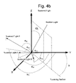 Specular reflection may be contrasted with a diffuse reflection (more typically termed scattering) illustrated in FIG. 4 b, wherein the scattering surface is in the X-Y plane. Light incident upon a scattering surface can also be thought of as having polar angles θi, φi, however the scattered light now rather than all going in one direction, is scattered into the full hemisphere centered about the point of incidence. The intensity of the scattered light is typically a complex function of the angles of incidence, θi, φi and the scattering angles θs, φs., where scattered light rays have many different amplitudes and scattering angles. As with specular reflection, some of the light may also either penetrate the surface, be absorbed at the surface, or be specularly reflected. However in almost all instances the intensity of the scattered light will be much lower than that for any specularly reflected light because so much of the light will be scattered into directions other than at the specular angle.