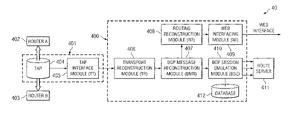 - Taps and sniffers are devices that actually tap into a communication line between two or more routers. These devices essentially eavesdrop on the communication taking place between different routers. Such tapping methods typically capture the routing information and display it as formatted BGP data. Similar tapping methods are used in Network Intrusion Detection Systems (NIDS), which use sophisticated analysis engines to detect system attacks/intrusions including attacks made at the BGP level. While such tapping/sniffing methods allow for passively capturing or recovering routing information without establishing a BGP session with the monitored routers, issues such as data security and ability to trap and compile information for all of the data passing through the communications lines arise.