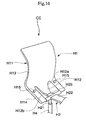 - the upper frame elements 141 a , 141 b extend upward while curved mildly such as they are recessed backward to some extent from the bottom end in which the hinge 17 viewed from the side is located so as to be made into an arch swelled forward again in the vicinity of its upper end, viewed from the side.