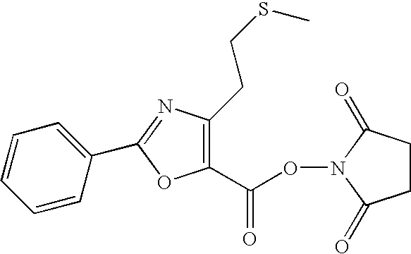 - LZINKRFCLKJEHZ-UHFFFAOYSA-N CC1=C(C2=NC(C)=C(C(=O)ON3C(=O)CCC3=O)O2)C=CC=C1 Chemical compound CC1=C(C2=NC(C)=C(C(=O)ON3C(=O)CCC3=O)O2)C=CC=C1 LZINKRFCLKJEHZ-UHFFFAOYSA-N 0.000 description 1