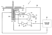 The oscillator 10 may be connected by line 12 to drive two voltage amplifiers or buffers 16, 18. The first voltage amplifier 16 has its output connected to line 20, which is operatively coupled to the saw blade 22 and drives the saw blade 22 to follow the oscillator's output. A current sensor 24 operatively coupled to line 20 provides a signal on line 26 that is fed to an amplifier 28 that is then connected to a processor 30 by line 32. The current sensor 24 may be, for example, a current sense transformer, a current sense resistor, a Hall Effect current sense device, or other suitable type of current sensors. An output line 34 from the processor 30 is operatively connected to the reaction system 92 so that the processor 30 can trigger the reaction system 92 if predetermined conditions are detected indicating, for example, contact between the blade 22 and the first object.