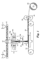 FIGS. 6 and 7 are schematic diagrams showing an illustrative extruded filament extending from extrusion head to collector, with accompanying illustrative apparatus and descriptive information.