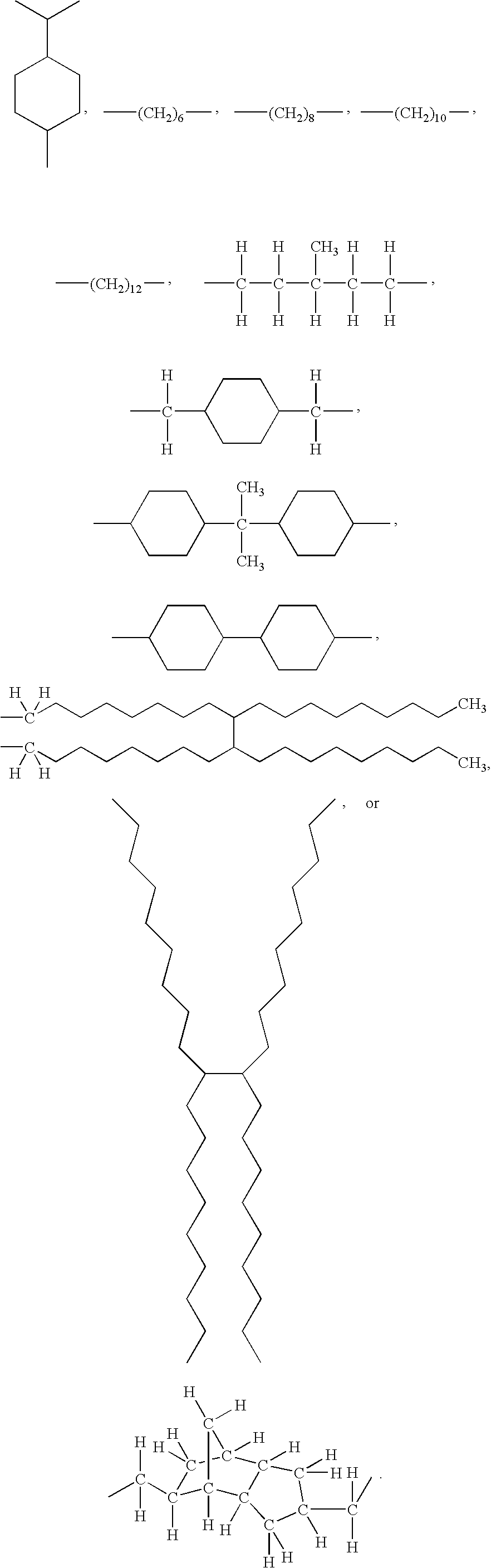 and other branched alkylene isomers (which may include unsaturations and cyclic groups), 4,8-bis(methylene)tricyclo[52102,6]decanediyl, of the formula (which is not intended to be limited to any particular stereochemistry and includes all cis and trans isomers)
