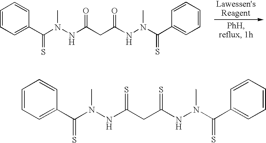 FIG. 1. Moreover, the size of multi-drug resistant MES-SA/DX5 tumors in nude mice treated with bis[thio-hydrazide amide] Compound (16) was significantly reduced compared with tumors in mice treated only with vehicle (see Example 17). The structure of Compound (16) is shown below: