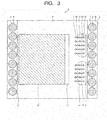 - the lands 3 , 4 are formed in an outer area excepting the area sealed by a sealing portion to be described later, and are arranged along two opposite sides (outline sides) of the circuit board 2 .