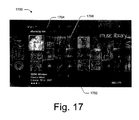 - FIGS. 16 , 17 and 18 are illustrations of exemplary implementations of respective media user interfaces having a tiered hierarchy of representations of media items, pivot areas and command regions.