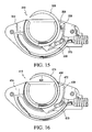 FIG. 15 is a cut away view of the suturing body showing a smooth friction camming member.