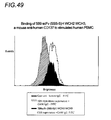 Two approaches have been used in an attempt to reduce the problem of HAMA. The first is the production of chimeric antibodies in which the antigen-binding part (variable regions) of a mouse monoclonal antibody is fused to the effector part (constant region) of a human antibody using genetic engineering. In a second approach, rodent antibodies have been altered through a technique known as complementarity determining region (CDR) grafting or “humanization.” In this process, the antigen binding sites, which are formed by three CDRs of the heavy chain and three CDRs of the light chain, are excised from cells secreting rodent mAb and grafted into the DNA coding for the framework of the human antibody. Because only the antigen-binding site CDRs, rather than the entire variable domain of the rodent antibody are transplanted, the resulting humanized antibody (a second generation or “hyperchimeric” antibody) is reportedly less immunogenic than a first generation chimeric antibody. This process has been further improved to include changes referred to as “reshaping” (Verhoeyen, et al., “Reshaping human antibodies: grafting an anti-lysozyme activity,” 1988 Science 239: 1534-1536; Riechmann, et al., “Reshaping human antibodies for therapy,” 1988 Nature 332: 323-337; Tempest, et al., “Reshaping human monoclonal antibody to inhibit respiratory syncitial virus infection in vivo,” Bio/Technol 1991 9: 266-271), “hyperchimerization” (Queen, et al., “A humanized antibody that binds to the human interleukin 2 receptor,” 1989 Proc Natl Acad Sci USA 86: 10029-10033; Co, et al., “Humanized antibodies for antiviral therapy,” 1991 Proc Natl Acad Sci USA 88: 2869-2873; Co, et al., “Chimeric and humanized antibodies with specificity for the CD33 antigen,” 1992 J Immunol 148: 1149-1154), and “veneering” (Mark, et al., “Derivation of therapeutically active humanized and veneered anti-CD18 antibodies. In: Metcalf B W, Dalton B J, eds. Cellular adhesion: molecular definition to therapeutic potential. New York: Plenum Press, 1994: 291-312). In the reshaping process on the basis of homology, the rodent variable region is compared with the consensus sequence of the protein sequence subgroup to which it belongs. Similarly, the selected human constant region accepting framework is compared with its family consensus sequence. Gussowal, et al., “Humanization of monoclonal antibodies,” 1991 Meth Enzymol 203: 99-121. The sequence analyses identify residues, which may have undergone mutation during the affinity maturation procedure and may therefore be idiosyncratic. Inclusion of the more common human residues is said to lessen immunogenicity problems by replacing human acceptor idiosyncratic residues. Further, the reshaping process is said to allow comparison of human and rodent consensus sequences to identify any systematic “species” differences. RSV19 antibodies were humanized by employing this procedure. Taylor et al., “Humanized monoclonal antibody to respiratory syncitial virus,” 1991 Lancet 337: 1411-1412; Tempest, et al., “Reshaping a human monoclonal antibody to inhibit human respiratory syncitial virus infection in vivo,” 1991 Bio/Technol 9: 266-271. Hyperchimerization is an alternative method of identifying residues outside CDR regions that are likely to be involved in the reconstitution of binding activity. In this method, the human sequences are compared with murine variable region sequences and the one with highest homology is selected as the acceptor framework. As in the reshaping procedure, the “idiosyncratic” residues are replaced by more commonly occurring human residues. The non-CDR residues that may be interacting with the CDR sequences are identified. Finally, it is determined which one of these residues is to be included in the variable region framework. Humanized antibodies against CD33 antigen were reportedly developed by this method. Co, et al., “Chimeric and humanized antibodies with specificity for the CD33 antigen,” 1992 J Immunol 148: 1149-154. See also Carter, et al., “Humanization of an anti-p185 HER2 antibody for human cancer therapy,” 1992 Proc Natl Acad Sci USA 89: 4285-4289. The displayed surface of the protein is the primary determinant of its immunogenicity. A humanized murine antibody can thus be made less immunogenic by replacing exposed residues that differ from those commonly found in human antibodies. This method of humanization is referred to as “veneering.” Appropriate replacement of the outer residues may have little or no impact on the inner domains or interdomain framework. Veneering is a two-step process. In the first step, the most homologous human variable regions are selected and compared by each single residue to the corresponding mouse variable regions. In the second step, the mouse framework residues, which differ from its human homologue, are replaced by the residues present in the human homologue. This replacement involves only those residues that are on the surface and at least partially exposed.